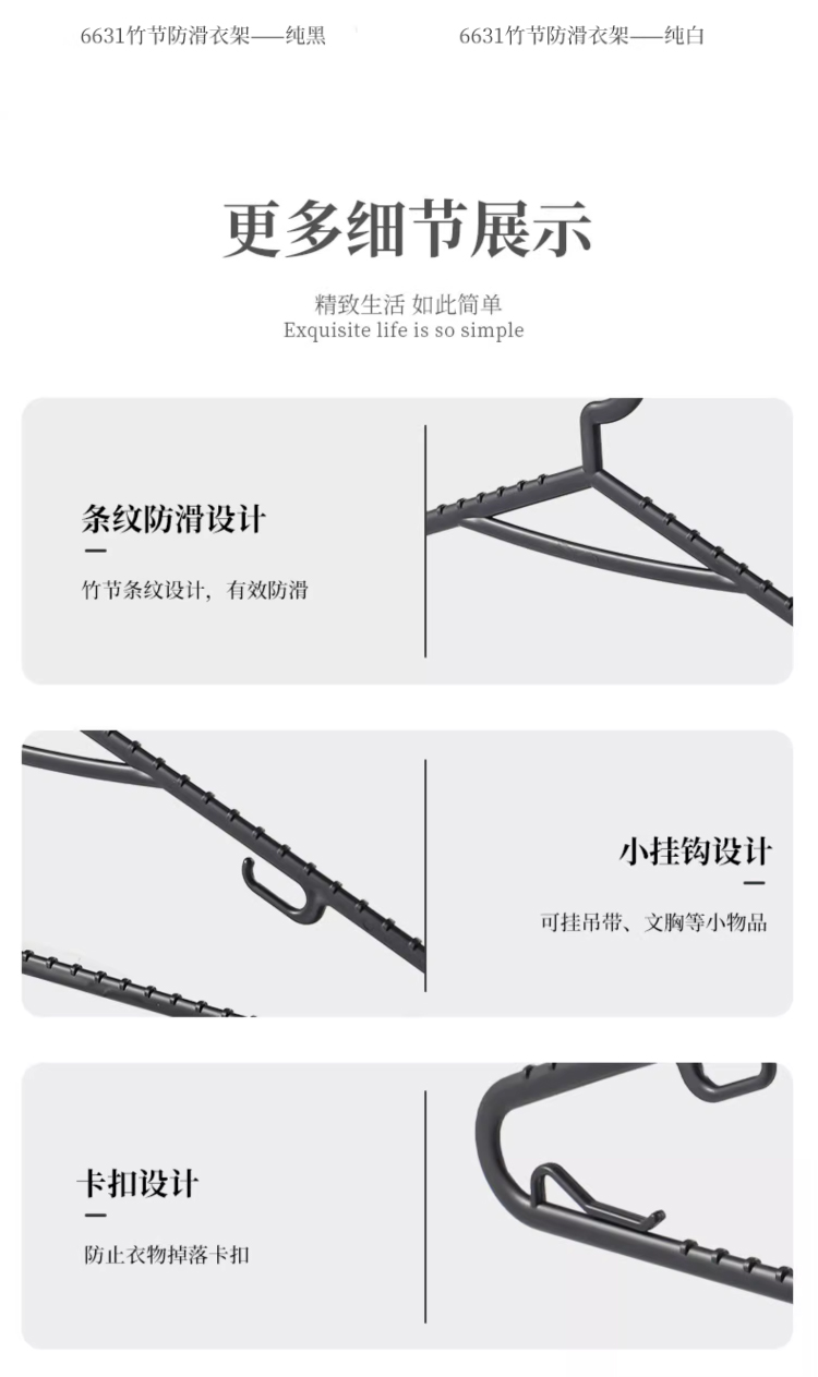 6642 8P 竹節防滑衣架